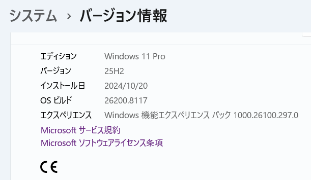 - 2024/11/20 Windows 11 Pro Version 24H2、Build 26100.2314に更新した。