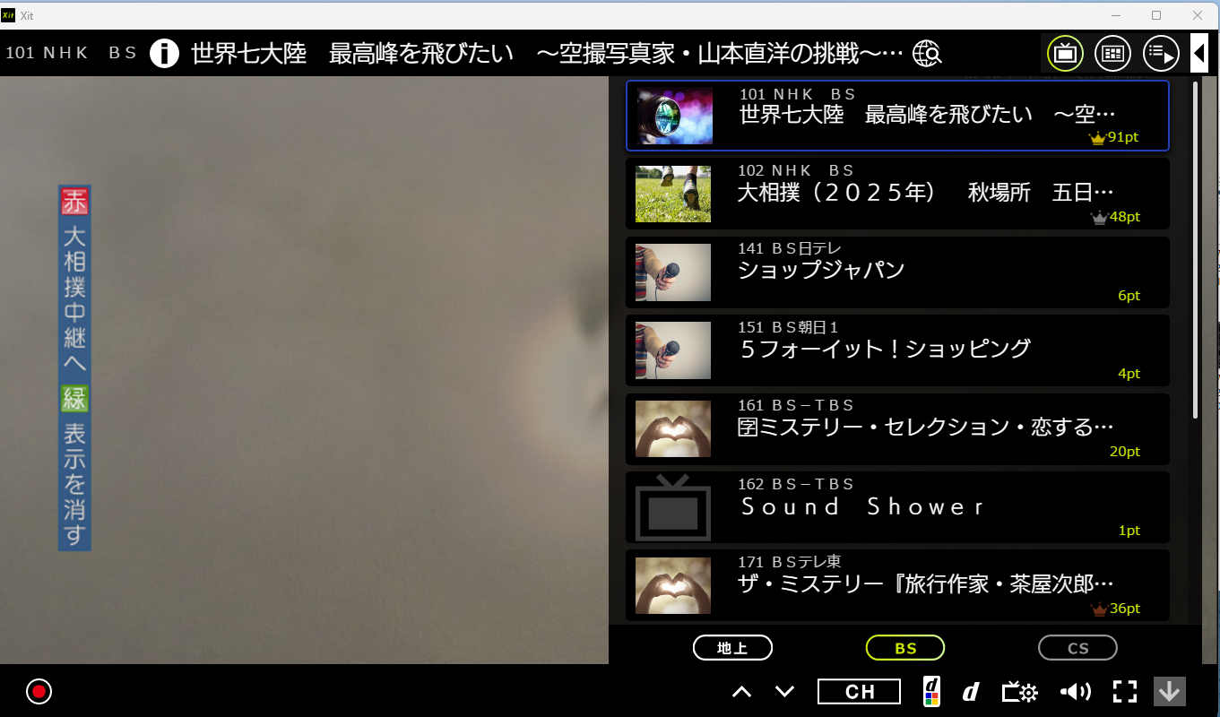 - Application Soft "Xit"を起動して番組を視聴、録画する。