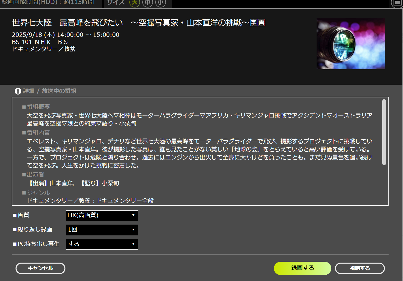 - 録画リストから Blu-ray Disk(BDRE-DL)に書き出す。