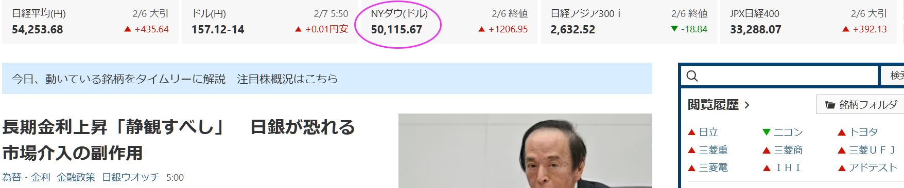 【ニューヨーク=五味梨緒奈】6日の米株式市場でダウ工業株30種平均が初めて5万ドルを突破した。終値で初めて4万ドルを超えてから1年8カ月で再び大台を超えた。テック企業のデータセンター投資の恩恵が製造業に広がっているほか、資源価格の高騰によってエネルギー株が上昇している。相場の主役がテック一強から変わりつつある。