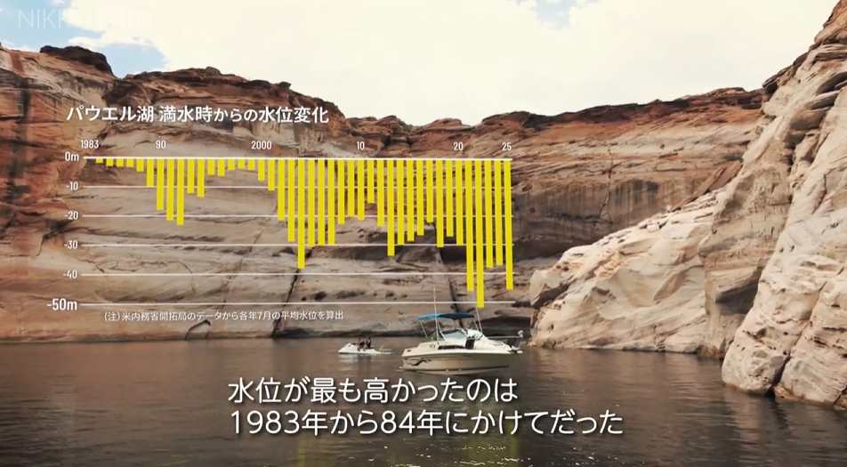7月中旬、先住民族のナバホ族が暮らすナバホ・ネーション(同州北部)では、雨が期待できる季節にもかかわらず大地は乾ききっていた。コロラド川流域の土壌水分量は約40 年間でおよそ2割減少していた。人による水の大量消費も問題になっている。同州南部の牧草地帯では過剰くみ上げによって、過去20年間で約35立方キロメートル(琵琶湖の貯水量の約1.2倍相当)の水量が帯水層から消失していた。米国の牧草に依存している日本の畜産業の持続可能性にも影響が出ることが懸念されている。